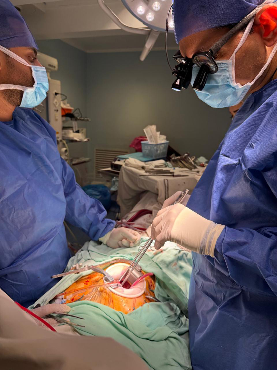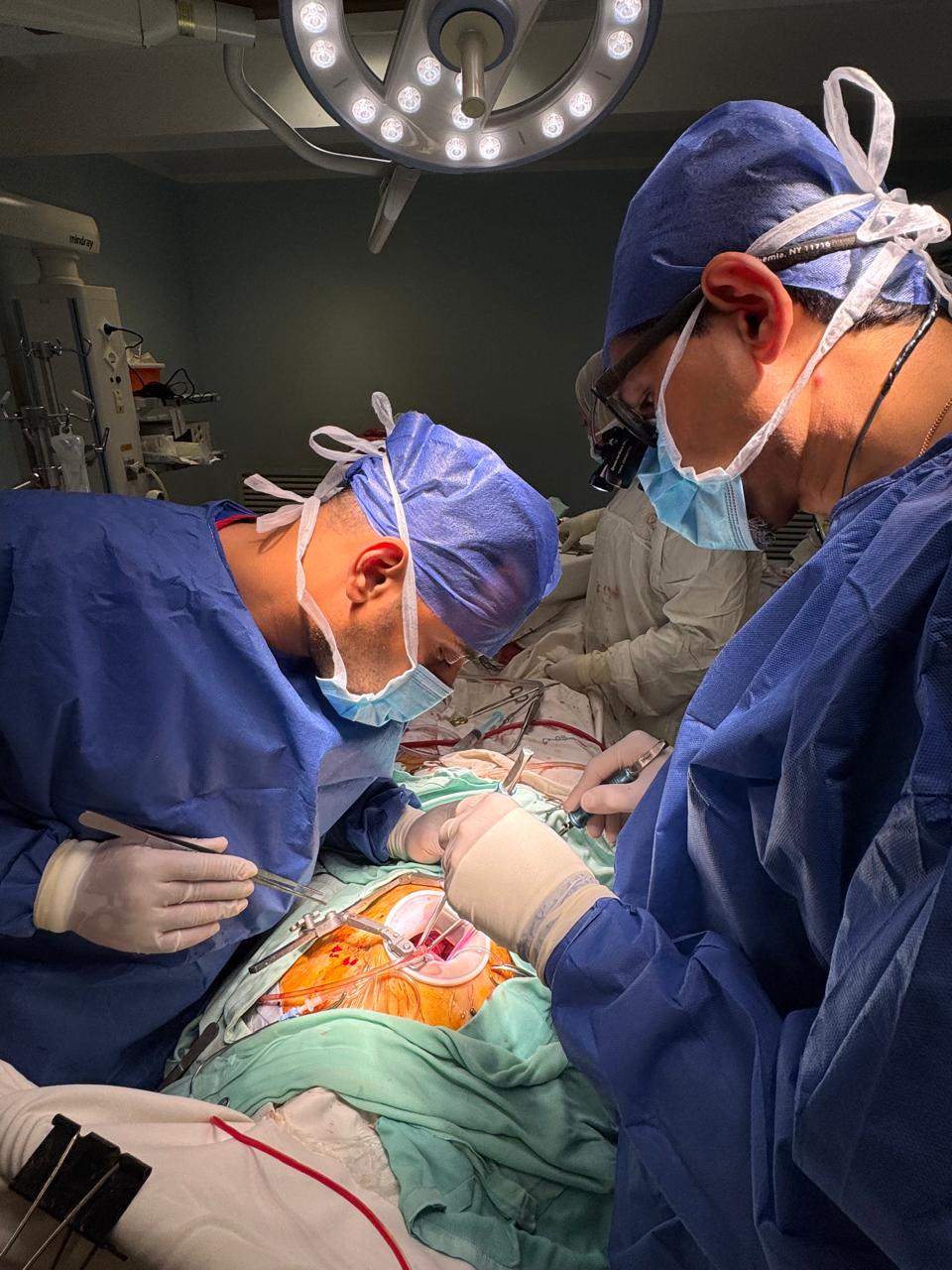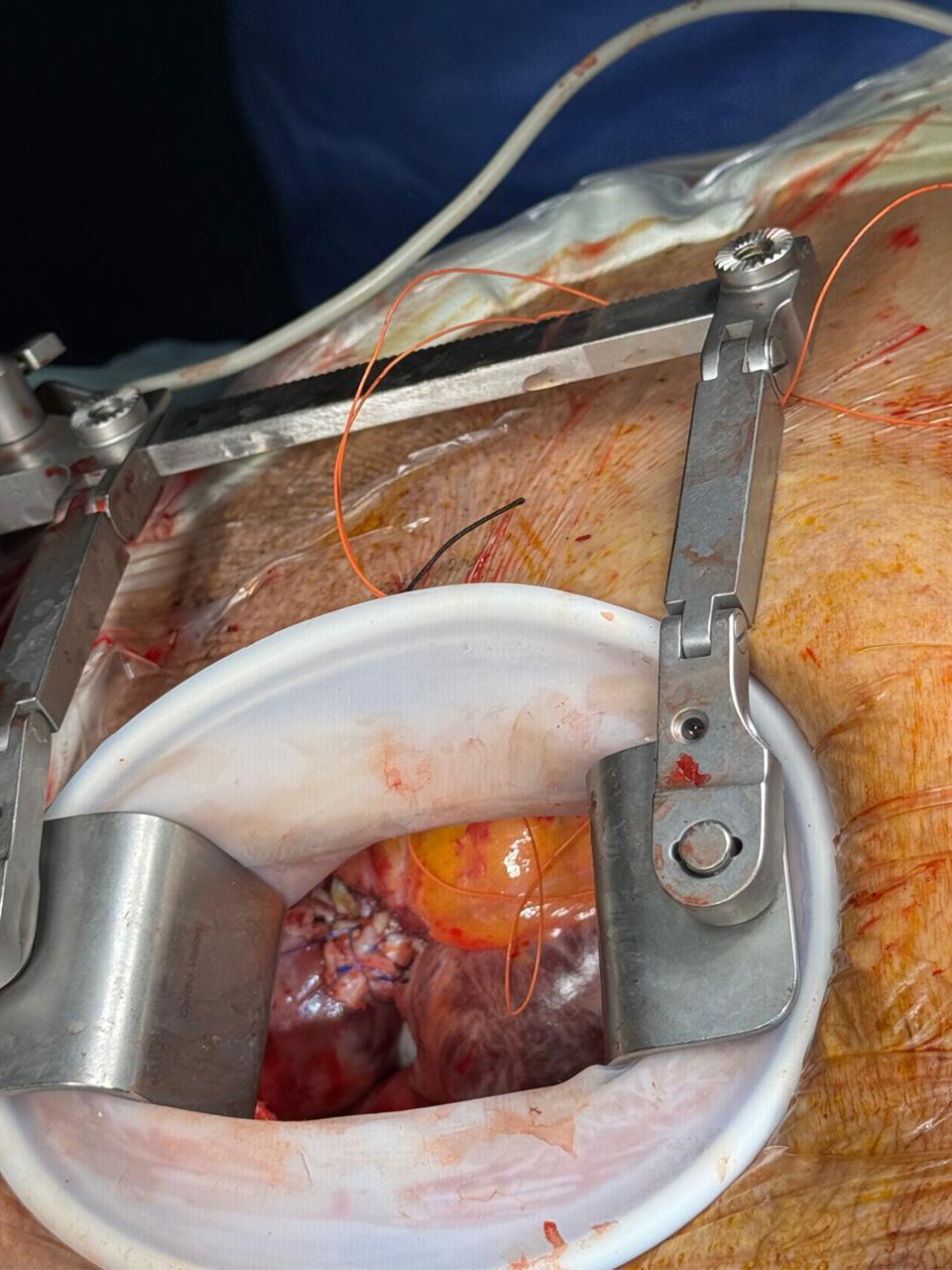 ثناء إجراء جراحة لإصلاح الصمام الميترالي بالتدخل المحدود بفتحة جانبية ٥ سم