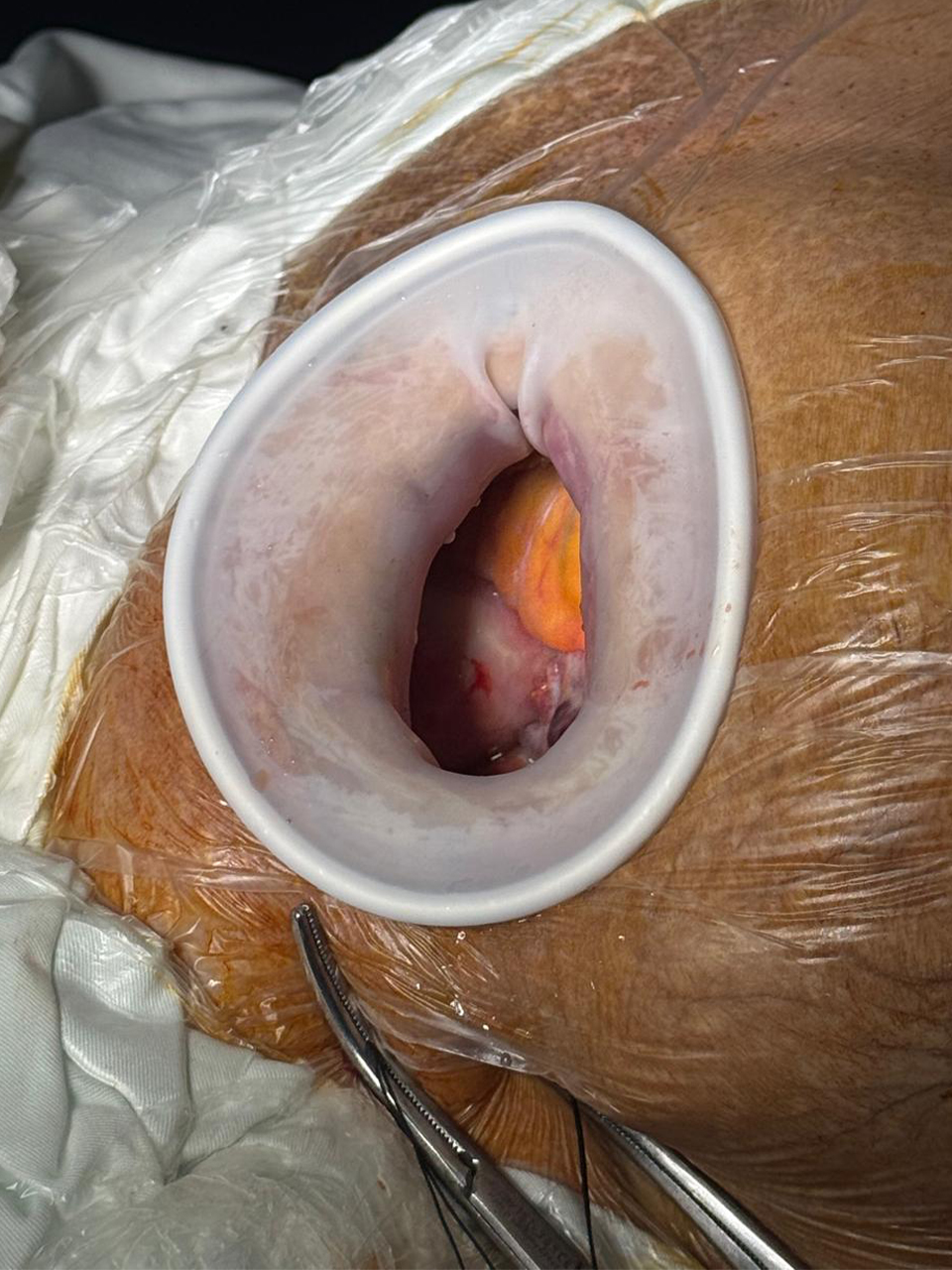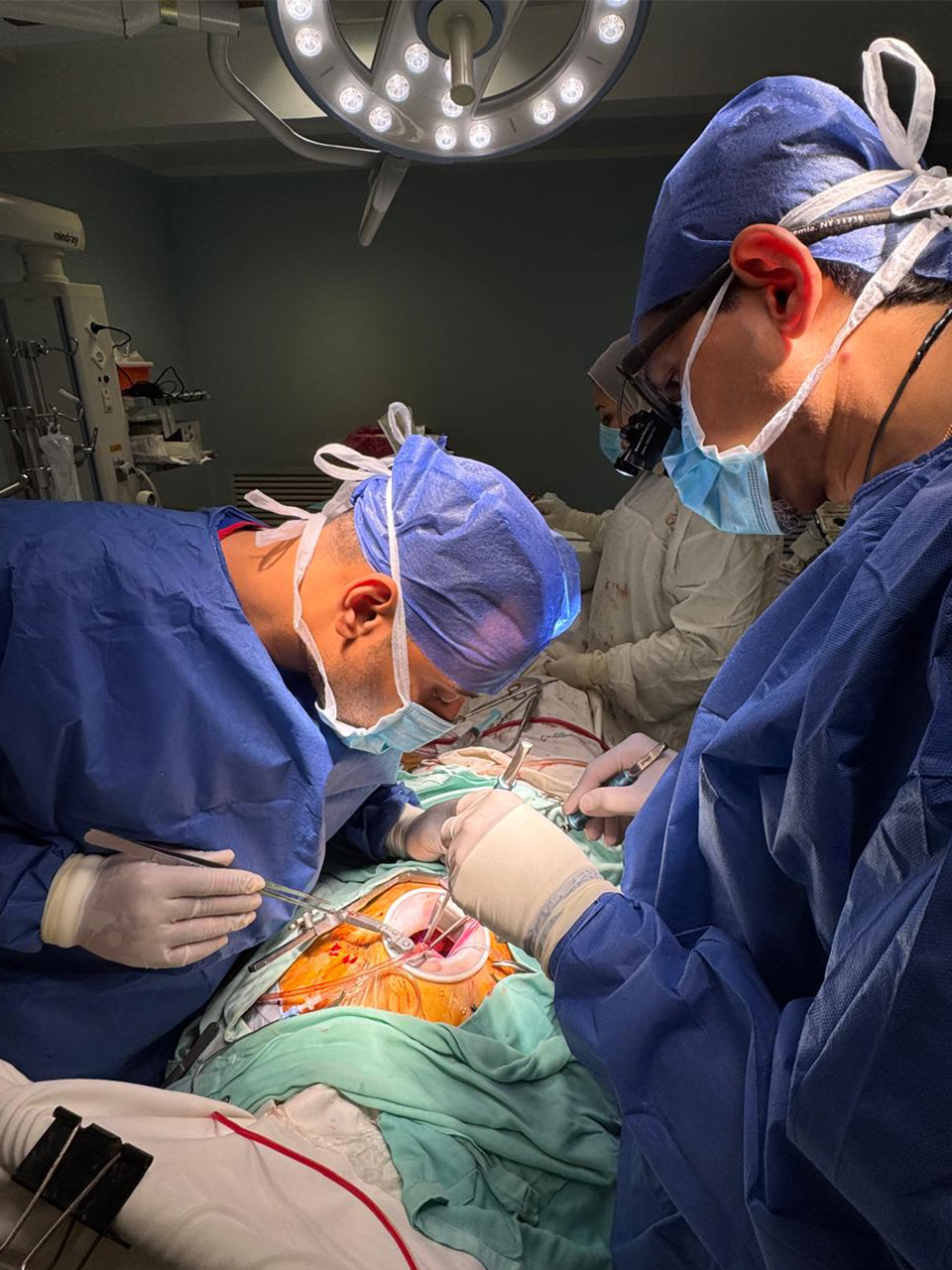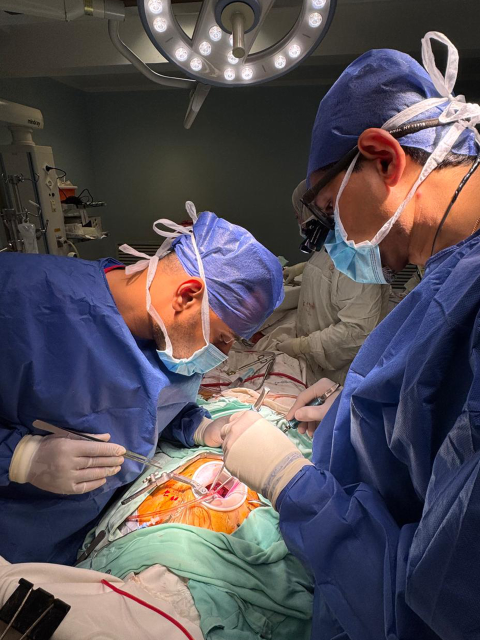 ثناء إجراء جراحة لإصلاح الصمام الميترالي بالتدخل المحدود بفتحة جانبية ٥ سم