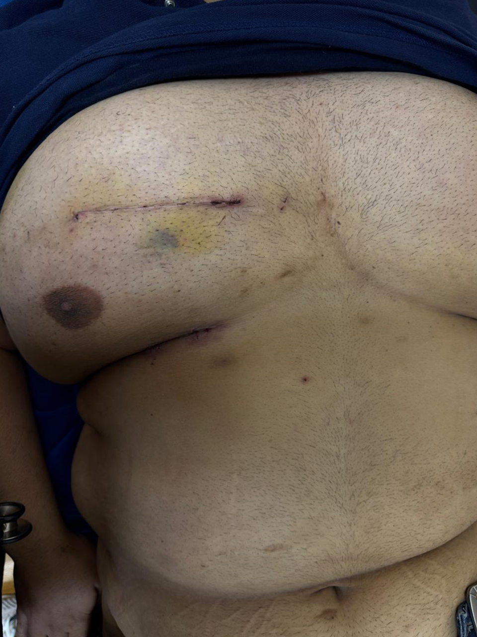 بعد اجراء جراحة ناجحة، لإصلاح الصمام الميترالي و زراعة ٦ شرايين تاجية لشاب ٣٦ عام